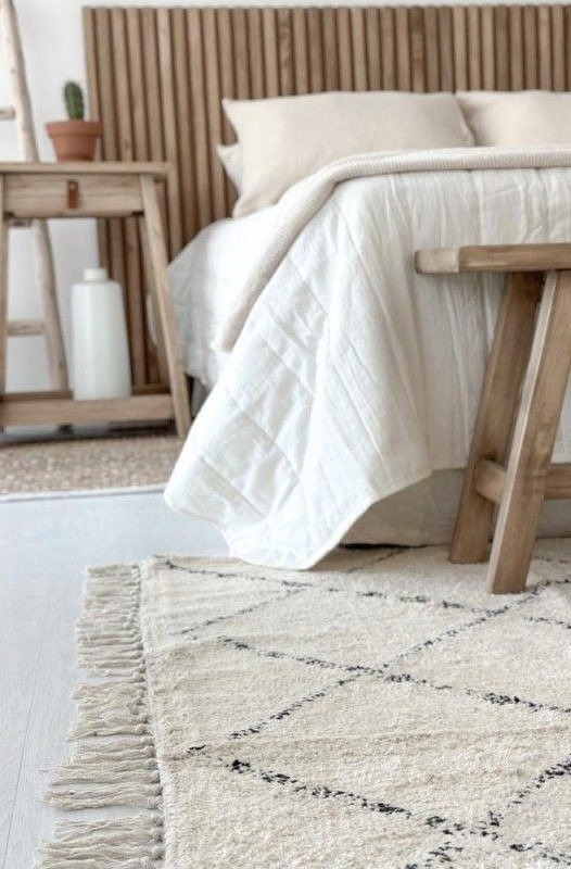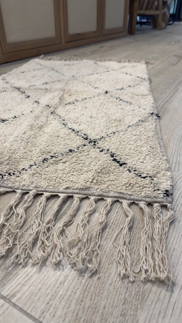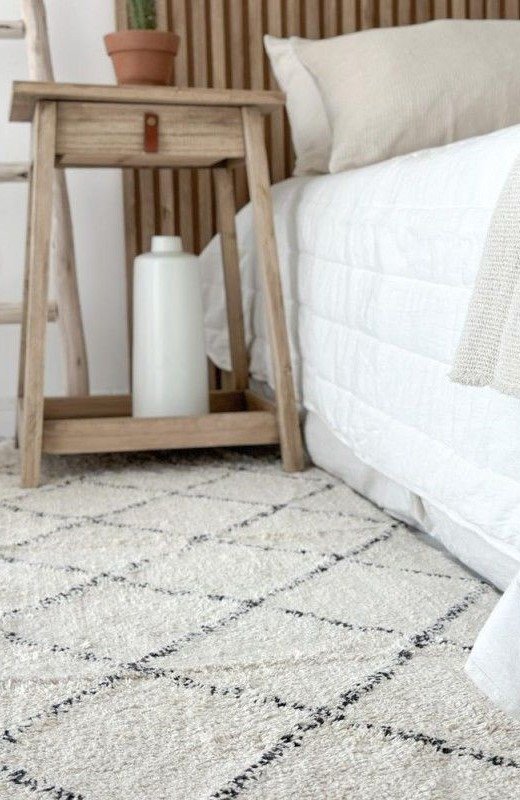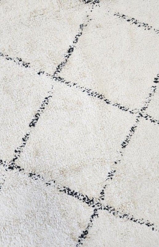 Alfombra costado de cama rombos, color crudo. 100% algodón. Lavable en lavarropas. Origen: India.