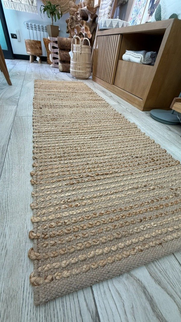 Yute natural 100%. Trenzado tipo artesanal. 2 medidas disponibles. Origen: India.