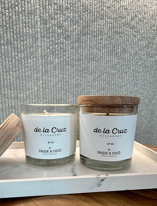 Vela de cera de soja, volcada a mano. Fusiona aceites esenciales de perfumeria fina.