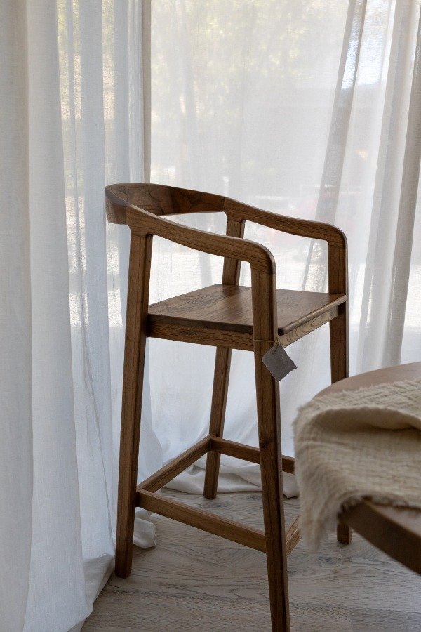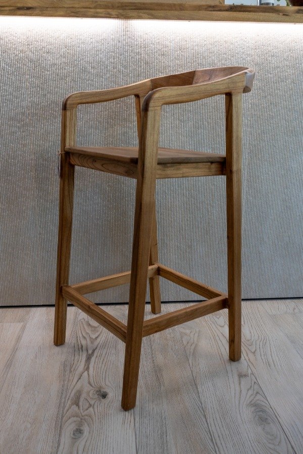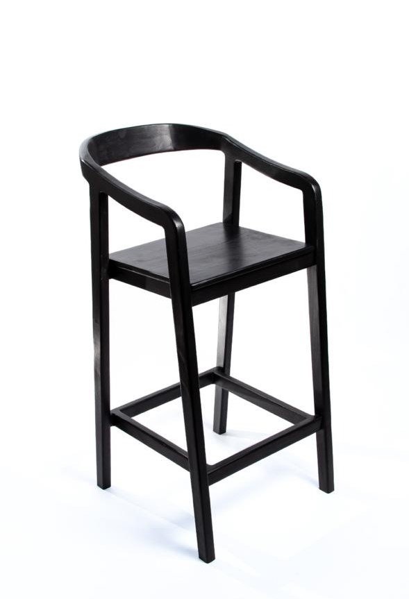 Banqueta con respaldo en forma de media luna. Tallado a mano. Clásica y cómoda. Terminación natural o negro. Medida: 100 cm. alto.