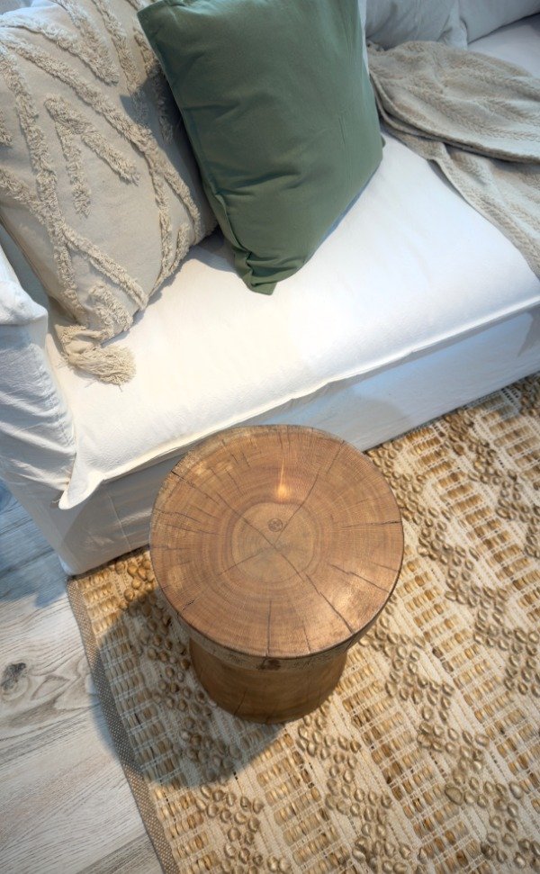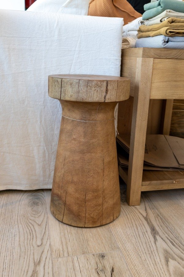 Banco/ taburete realizado en madera natural grabilea. Lustre natural. Medida: 45 cm. alto x 30 cm. diámetro.