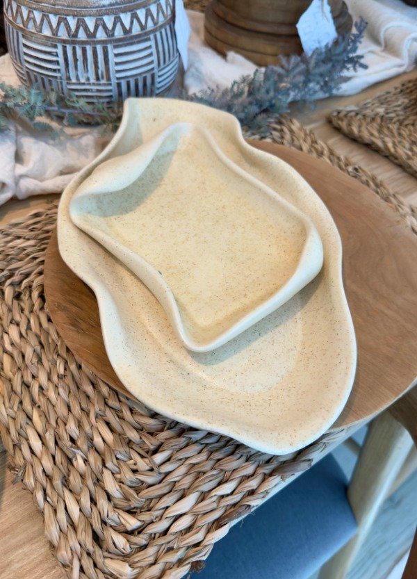 Bandeja de cerámica. Artesanal, ninguna pieza es igual. Apta alimentos, calor y lavavajillas. Medida aprox.: 35 cm. x 20 cm