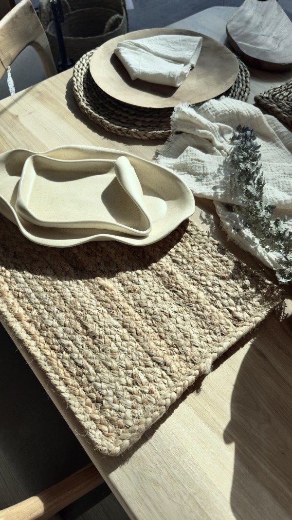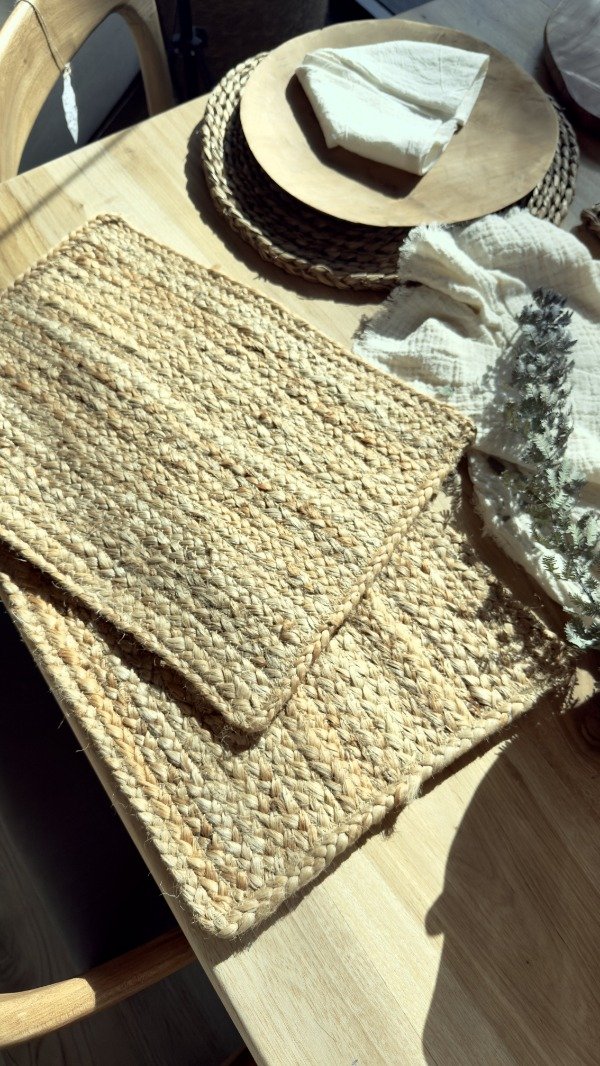 Individual 100% yute natural, 30 cm. x 40 cm. Trenzado a máquina. Origen: India.