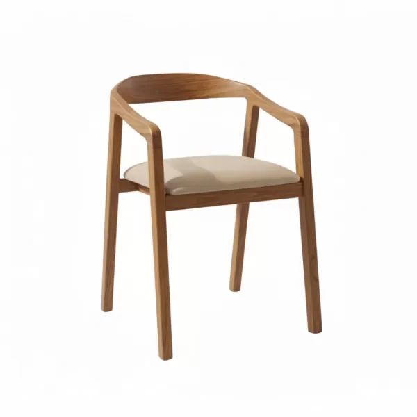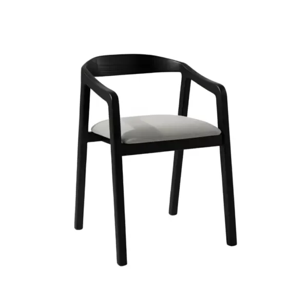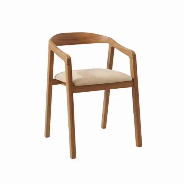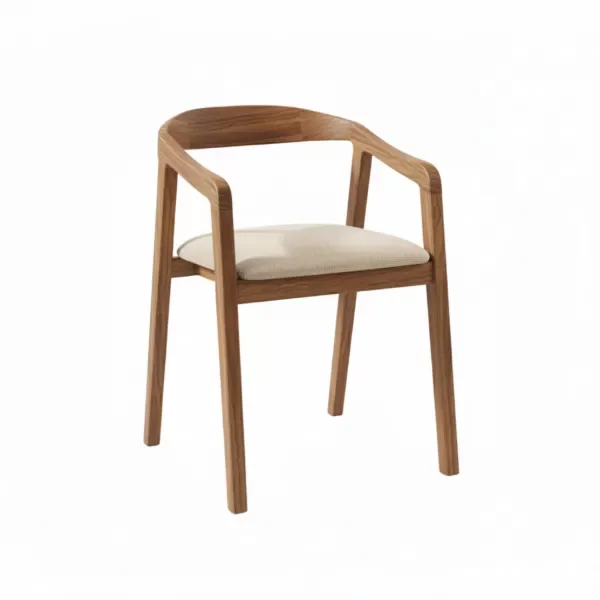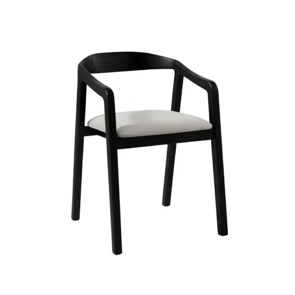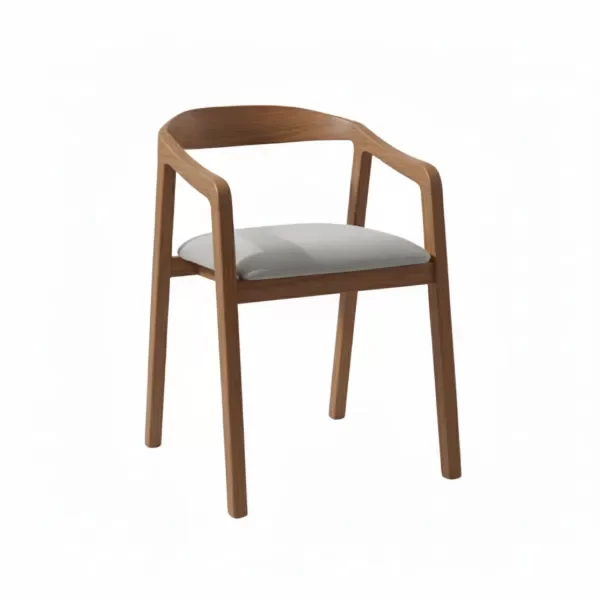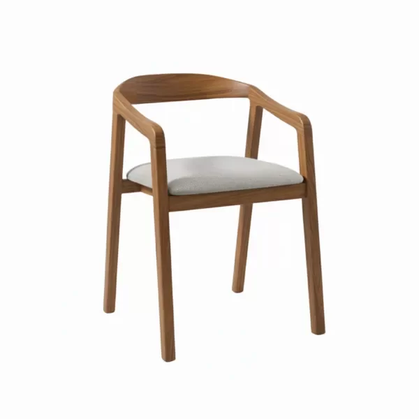 Silla con estructura de madera maciza de paraíso. Tapizado con tratamiento antimanchas permite un mantenimiento sencillo, mientras que la posibilidad de elegir el color del textil la convierte en una pieza versátil y personalizable.