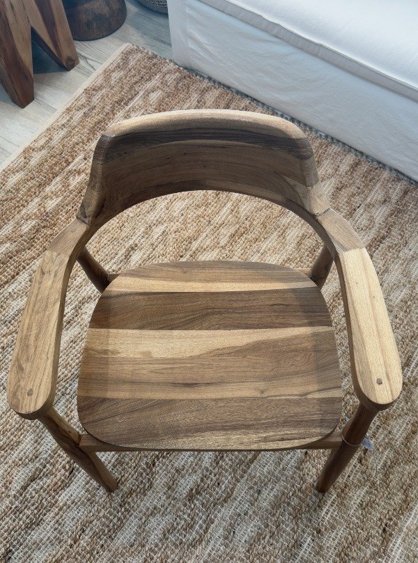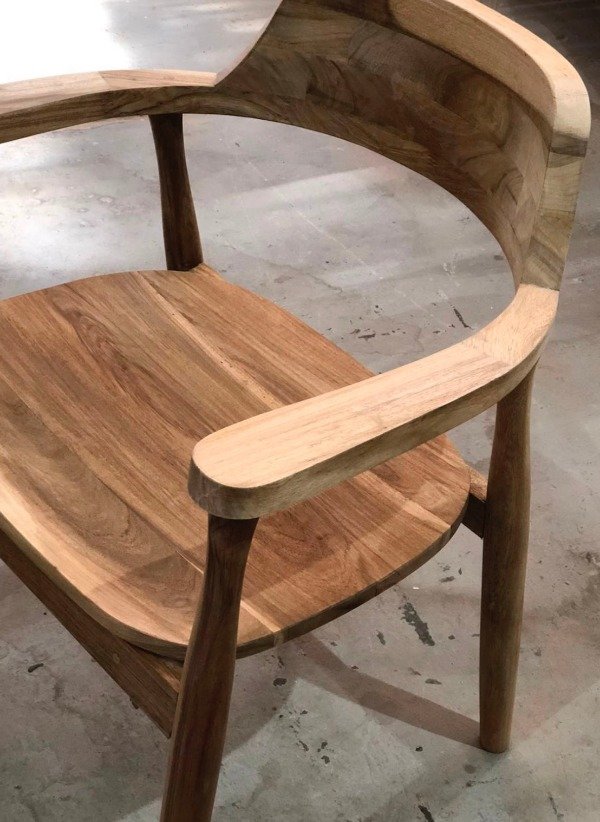 Silla con estructura de madera maciza de petiribi. La silla está sometida a un proceso de triple lijado y tratamiento al poliuretano, protegiendo la madera y conservando su tono y veta original.
