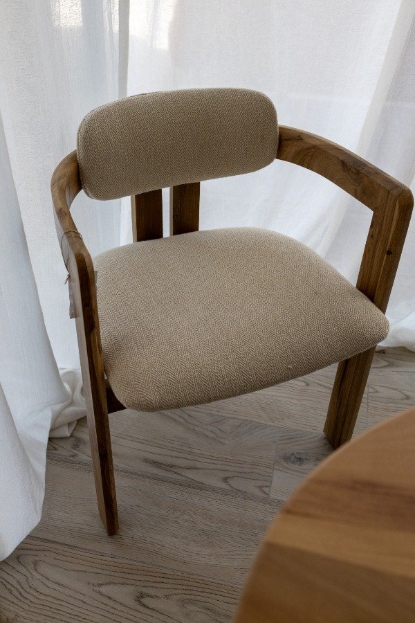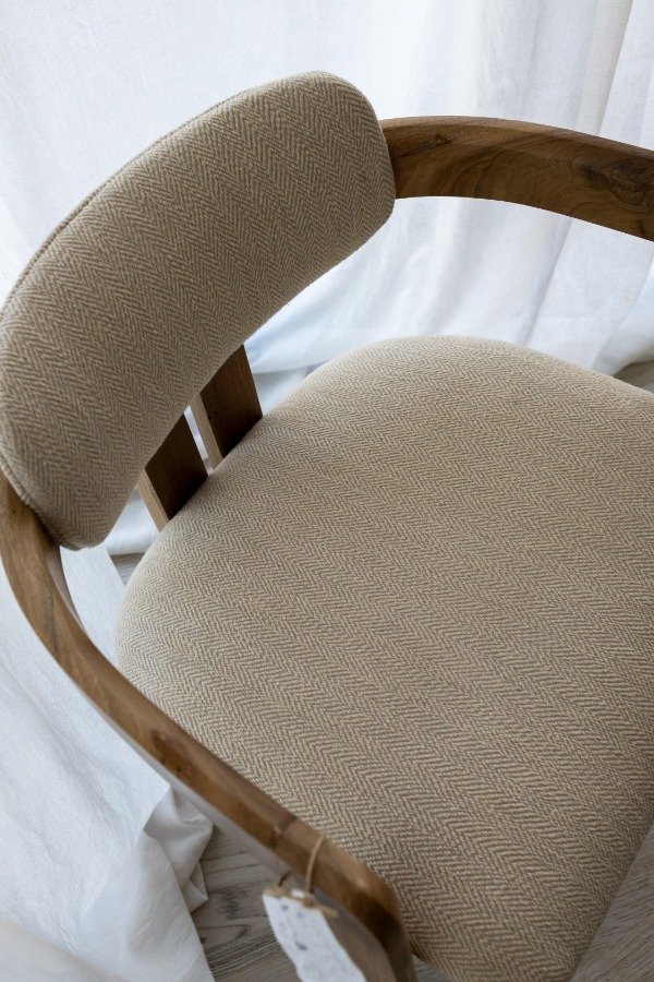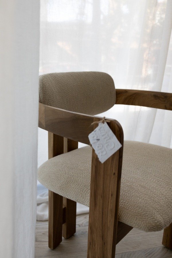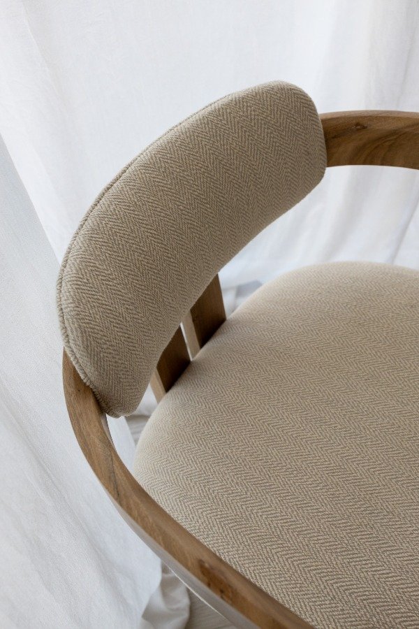 Silla con estructura de madera maciza de petiribi. La silla está sometida a un proceso de triple lijado y tratamiento al poliuretano, protegiendo la madera y conservando su tono y veta original.