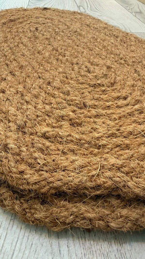 100% coco. Trenzado artesanal. Medida: 60 x 40. Origen: India.