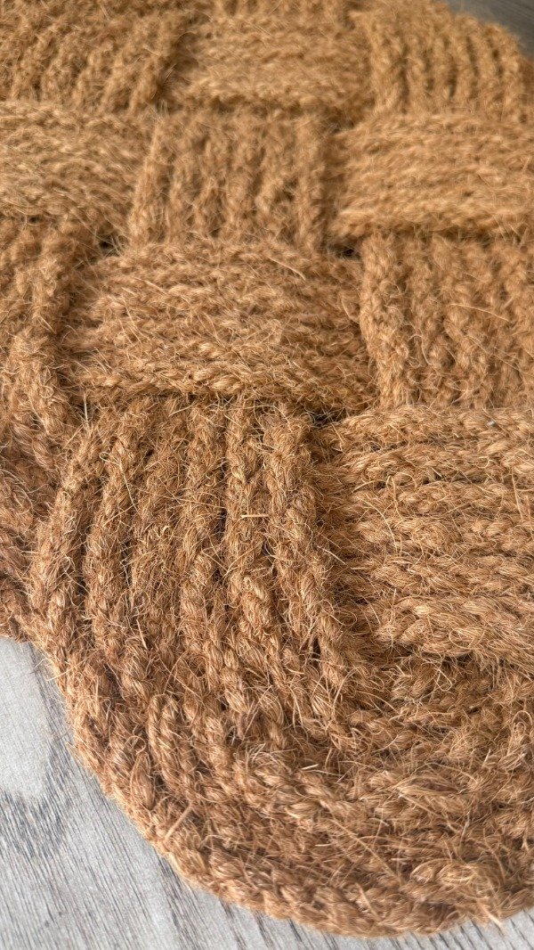 100% coco, tejido artesanal. Medida: 60 x 40 / 75 x 45. Origen: India.