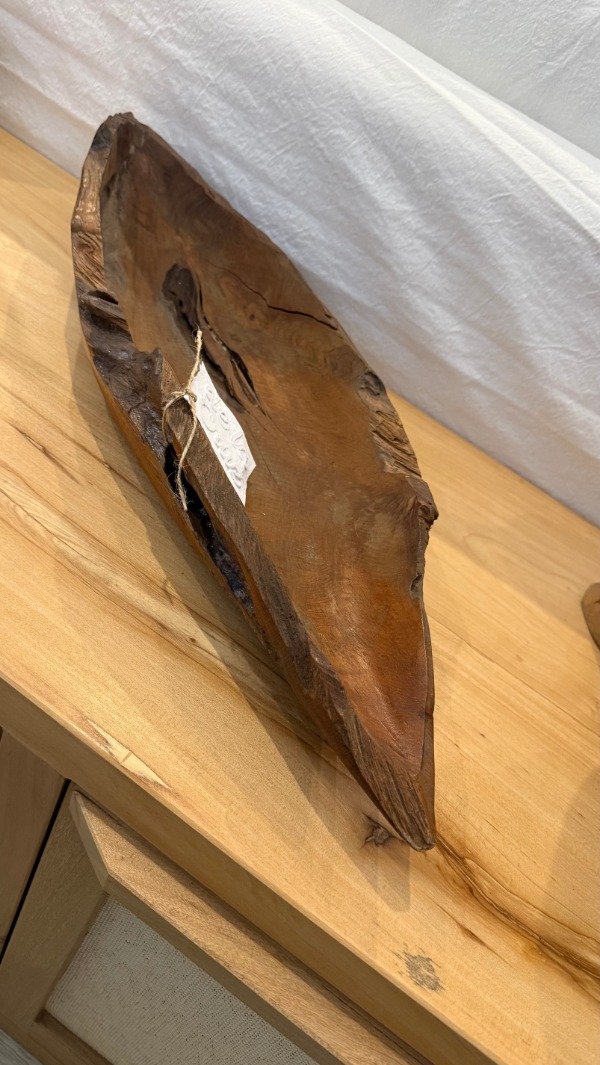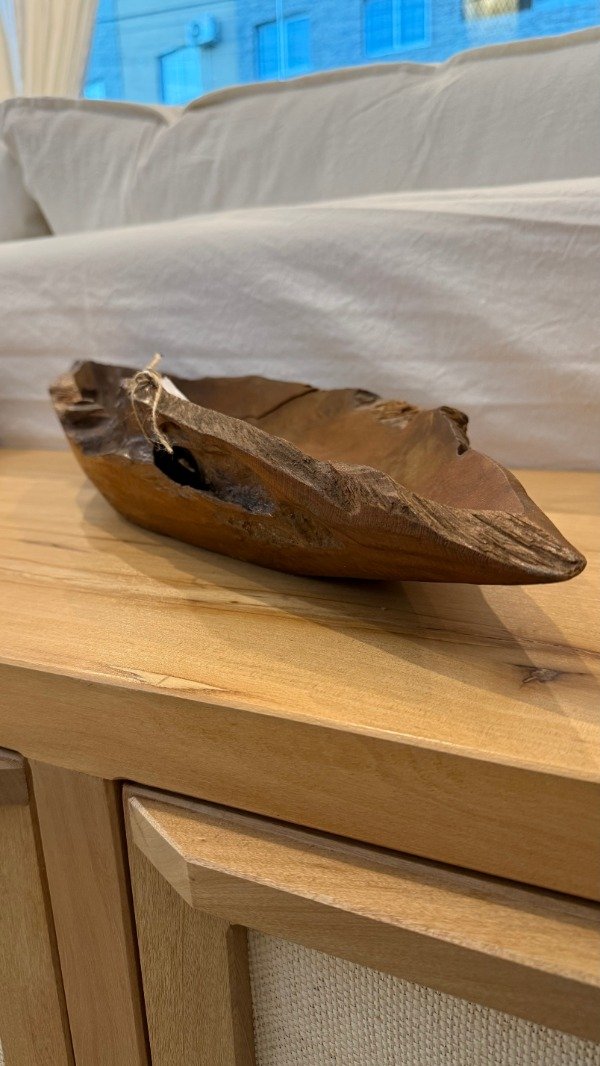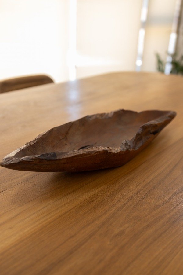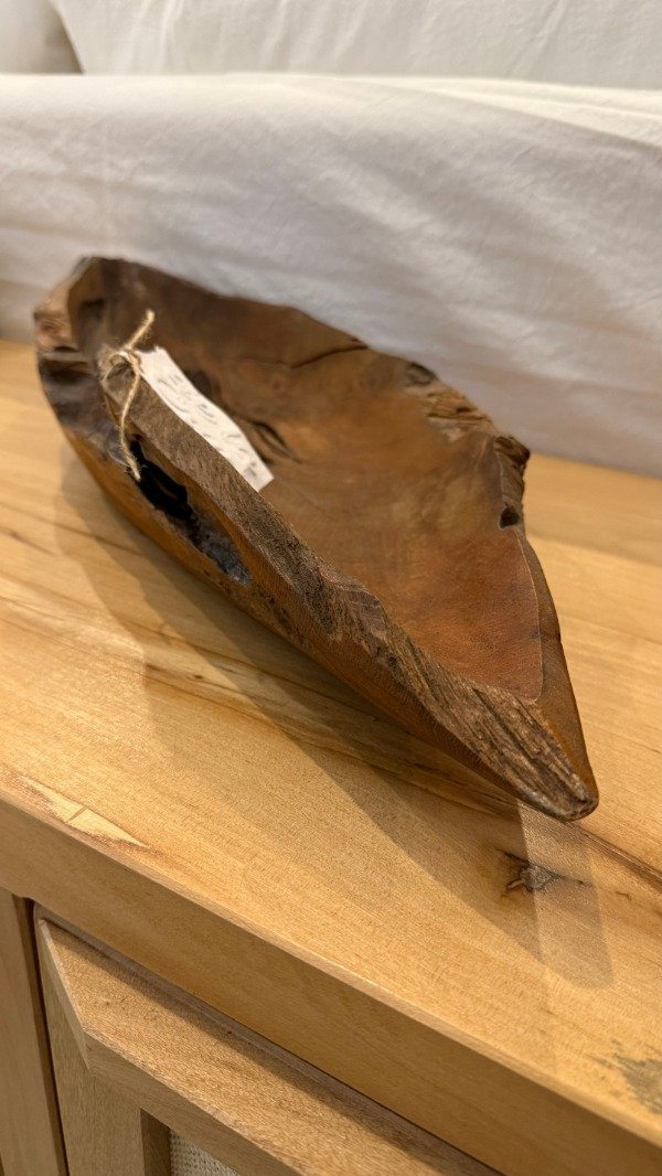 Bowl tallado madera teka, 0.60 m. largo. Ideal centro de mesa. Origen: Indonesia.