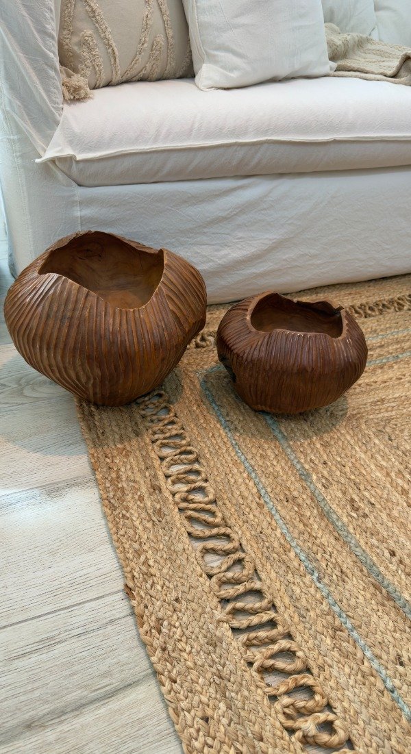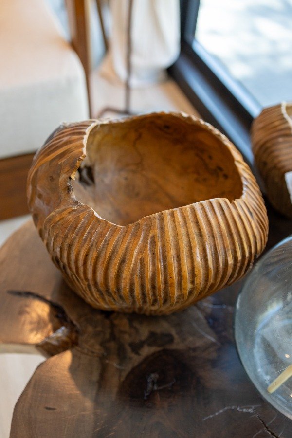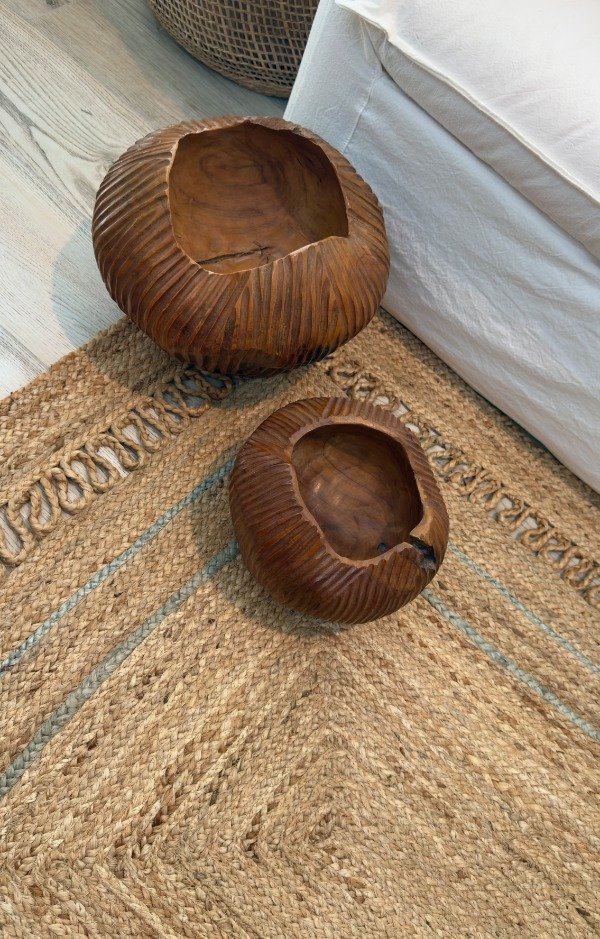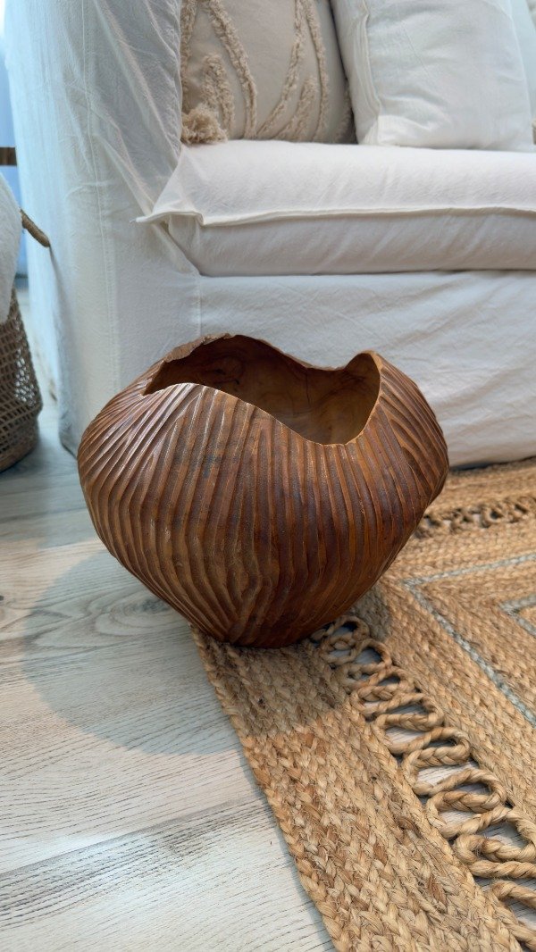Bowl tallado en madera natural teka. 2 medidas disponibles. Origen: Indonesia.