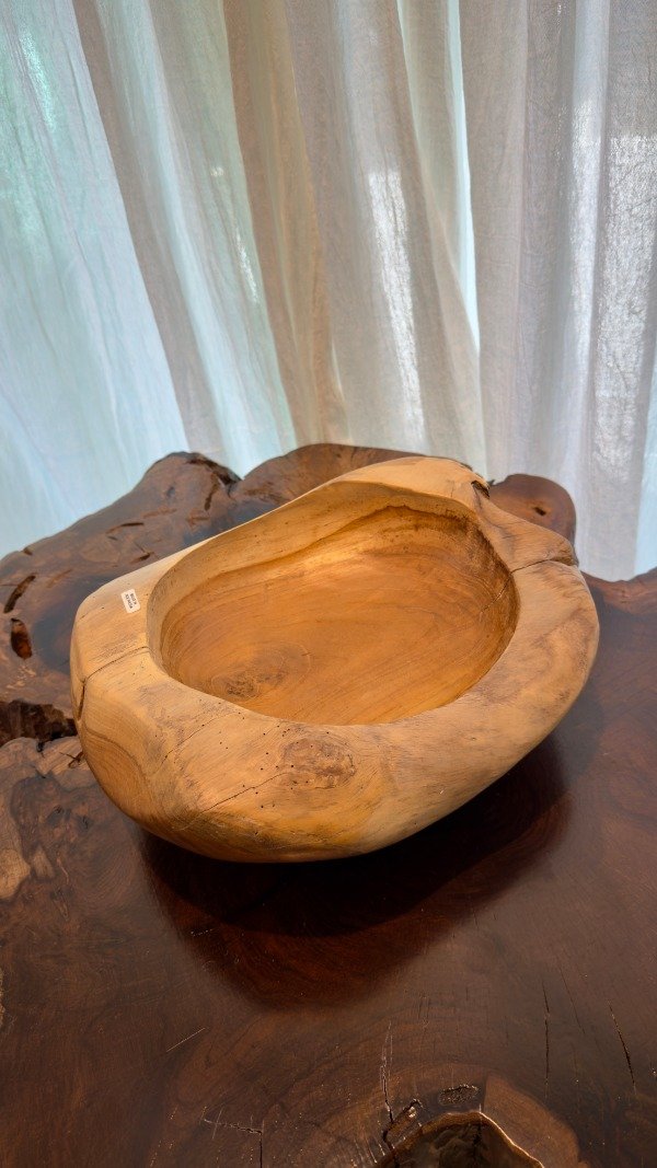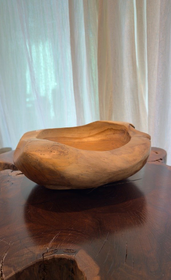 Bowl bandeja tallado en madera natural teka. Medida: 30 cm. largo x 24 cm. ancho. Origen: Indonesia.