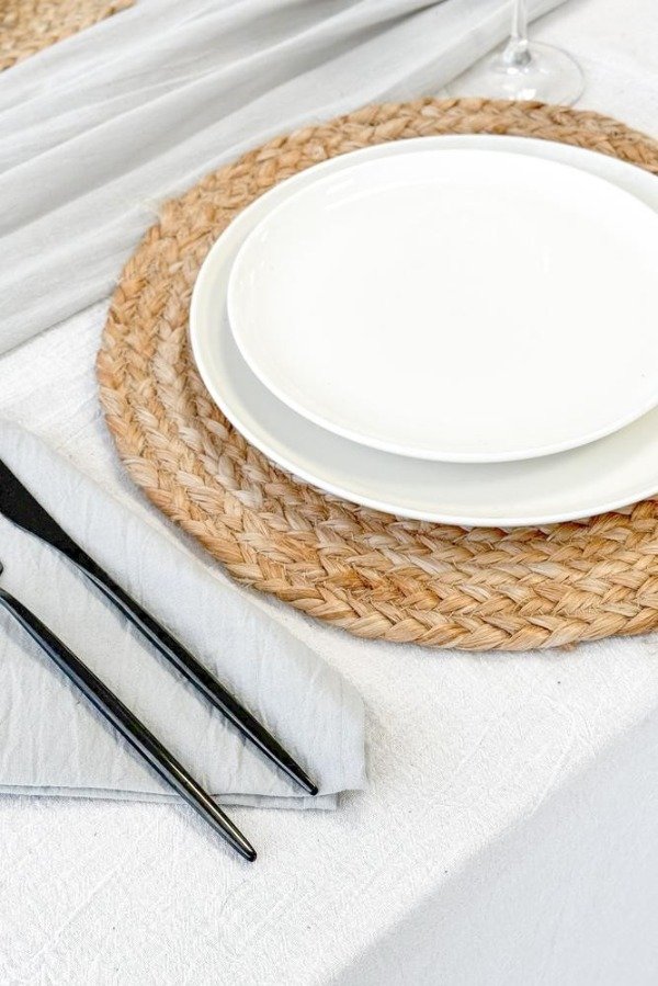 Individual 100% yute natural, 38 cm. diámetro. Trenzado a máquina. Origen: India.