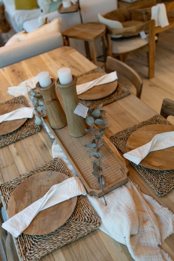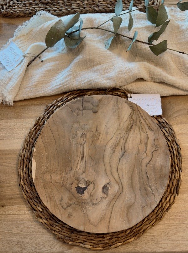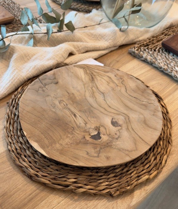 Platos de madera natural teka. Medida: 30 cm. de diámetro.