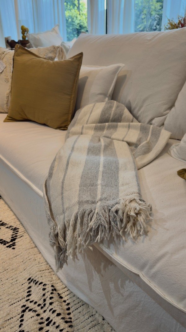 Confeccionada en telar. Algodón 100 %. Lavable en lavarropas. Terminación en flecos. Medida : 200 cm. x 100 cm.
